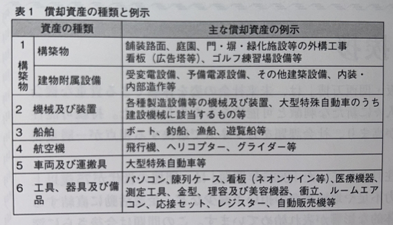 償却資産とは、土地及び家屋以外の事業用に供することができる資産のうち、一定のものをいいます。会社や個人で事業を行っている人が、事業のために用いることができる構築物や機械、器具や備品などが申告の対象になります(表1参照)。