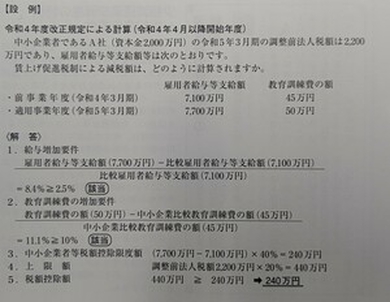 継続雇用者給与等支給増加割合が、4%以上の場合は5%を加算して税額控除割合が15%に、5%以上の場合は10%を加算して税額控除割合が20%に、7%以上の場合は15%を加算して税額控除割合が25%になります。