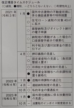 令和3 年度税制改正(案)では、新型コロナウイルス感染症の蔓延・拡大を踏まえ、事業や生活を取り巻く環境が厳しくなっている中、経営基盤の支援強化のほか、土地の固定資産税の負担調整措置や住宅ローンなどで減税の対象拡大や延長が盛り込まれています。
