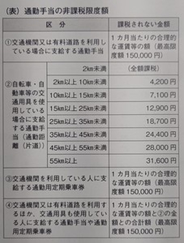 非課税となる限度額は、通勤のための運賃・時間・距離等の事情に照らして、最も経済的かつ合理的な経路及び方法で通勤した場合の通勤定期券などの金額です。