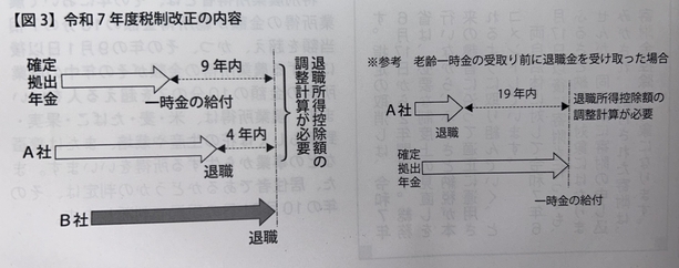 確定拠出年金の老齢給付金を一時金で受け取った場合、退職所得として課税されます。その後、一定の期間内に他の退職金を受け取った場合、退職所得控除額の調整をする必要がありますが、令和7年度税制改正で、対象となる期間が変わりました。