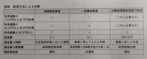 10 万円未満は消耗品として無条件に損金として、その他のケースを比較してみると、図表のようになります。